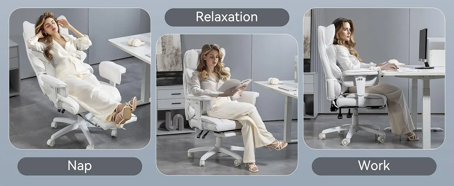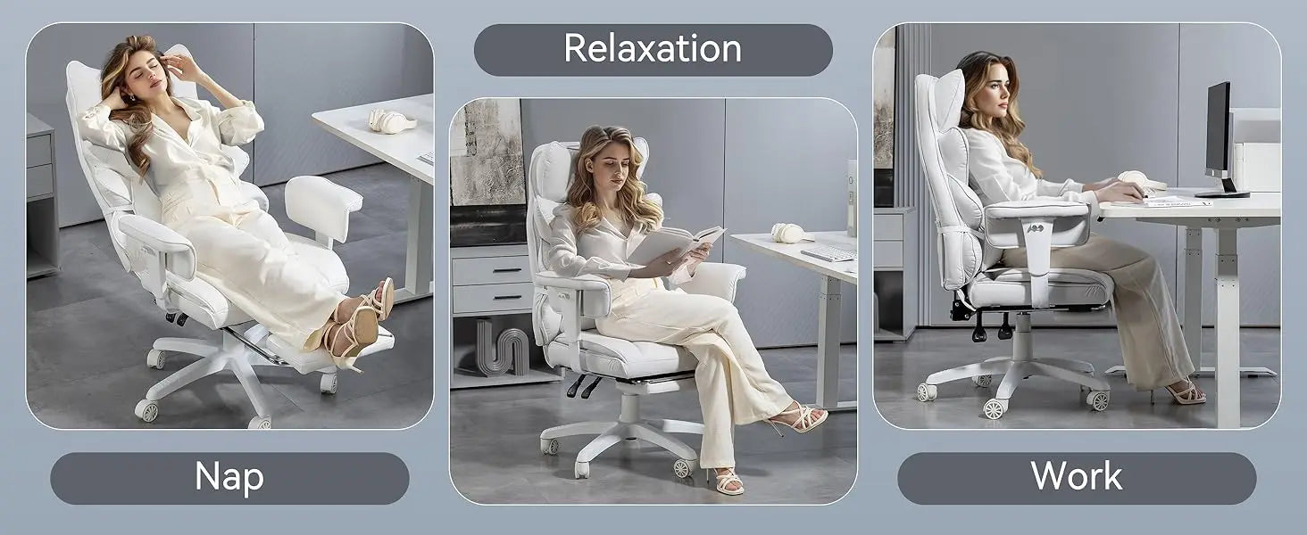 High Back Computer Gaming Chair with Adjustable Armrests,Executive Desk Chair with Footrest,(PU Leather, White)